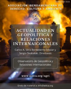 El Observatorio de Geopolítica y Relaciones Internacionales de la Asociación Iberoamericana de Derecho, Cultura y Ambiente analiza los fenómenos políticos, sociales y económicos de Iberoamérica y el mundo, con especial atención a las disputas por la hegemonía y las configuraciones de poder en el sistema internacional contemporáneo. Desde una perspectiva compleja que incorpora la territorialidad como dimensión básica de la vida social, estudia los proyectos sistémicos o civilizacionales en pugna y su impacto en las relaciones internacionales actuales.
