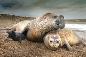 Elefantes Marino del Sur (Mirounga leonina), macho y hembra