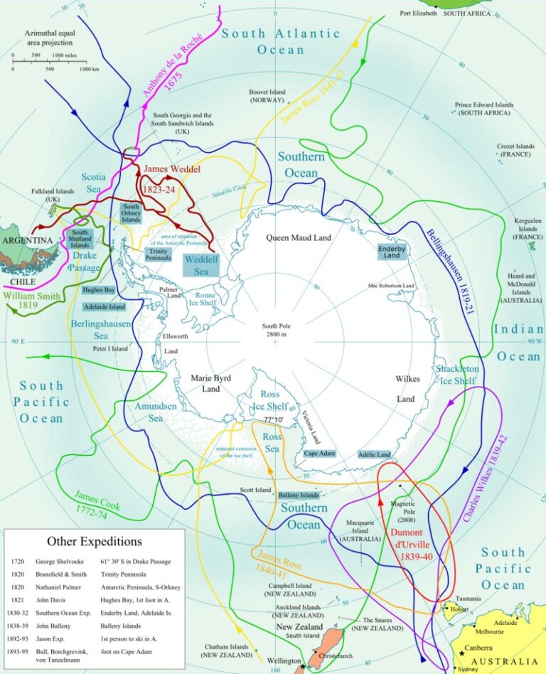 Principales expediciones realizadas hasta el descubrimiento de la Antártida
