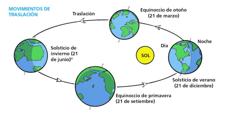 Además, por efecto del movimiento de traslación, al sur del Círculo Polar Antártico (66°33’S) hay un período durante el invierno austral cuando el sol no sale por encima del horizonte, conocido como “noche polar” y la duración de este período aumenta con el aumento de la latitud. En el propio Polo Sur, hay luz solar de ángulo bajo continuamente entre el 21 de septiembre y el 21 de marzo y oscuridad durante la otra mitad del año. (IMAGEN 4_Traslación Terrestre)