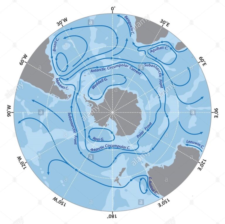La Corriente Circumpolar Antártica es la corriente marina mas intensa del planeta. Permite la circulación e intercambio de aguas entre los océanos Atlántico, Índico y Pacífico, a los que aporta aguas frías y cargadas de nutrientes; pero sella e impide que aguas cálidas lleguen a latitudes por debajo de los 60° S.