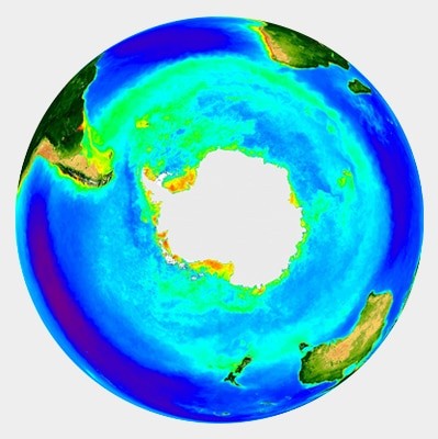 Concentración de clorofila en el Océano Austral medida por el proyecto SeaWiFS