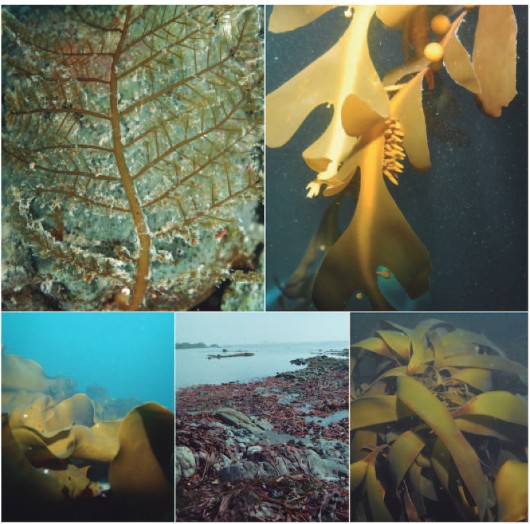 Diferentes tipos de macroalgas comunes en la Antártida.