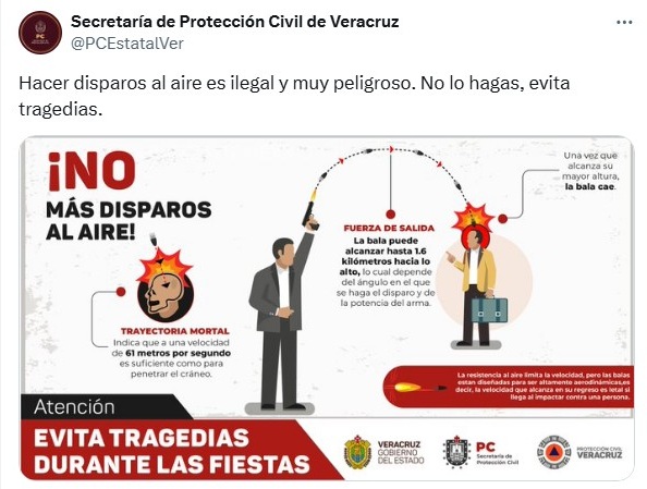 Secretaría de Protección Civil del Estado de Veracruz. (31 de 12 de 2019). No más disparo al aire. Xalapa, Veracruz, México. Recuperado el 16 de 08 de 2025, de https://x.com/PCEstatalVer/status/1212134842084642822