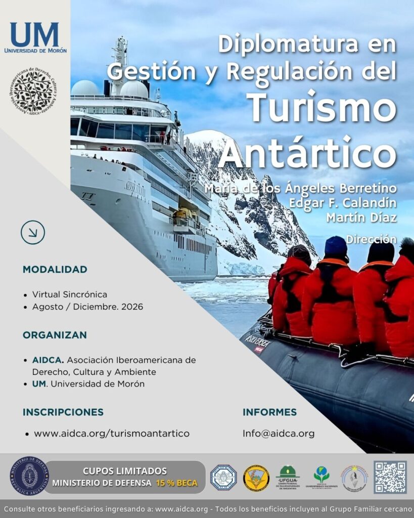 La Diplomatura en Gestión y Regulación del Turismo Antártico, organizada por AIDCA y la Universidad de Morón, tiene como objetivo brindar una formación especializada sobre la regulación, gestión y desafíos que presenta la actividad turística en el continente blanco. Partiendo del marco jurídico internacional establecido por el Sistema del Tratado Antártico, la propuesta académica aborda los principios que rigen la preservación del medioambiente antártico, su valor científico y la cooperación internacional como ejes fundamentales para garantizar un desarrollo turístico responsable y sostenible.